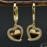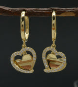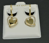 14K Solid Yellow Gold created diamond heart leverback Earrings