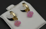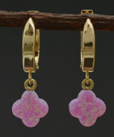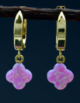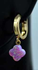14K Solid Yellow Gold Flower Huggie Opal Dangle Earrings