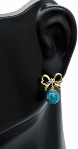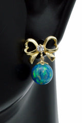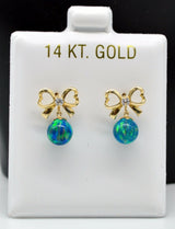 14K Solid Yellow Gold Green Fire opal CZ Drop Earrings