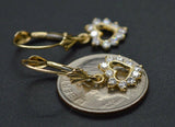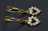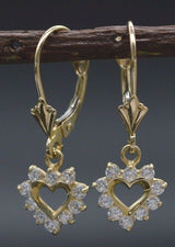 14K Solid Yellow Gold Heart White (CZ) LeverBack Drop Earrings