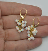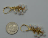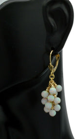 14K Solid Yellow Gold Lever Back Grape White Opal Drop Dangle Earrings
