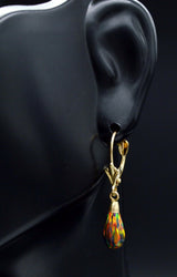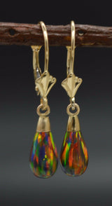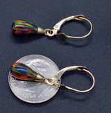 14K Solid Yellow Gold Tear Drop Black Fire Opal Leverback Dangle Earrings