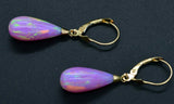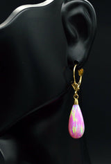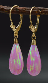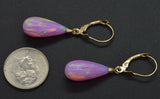 14K Solid Yellow Gold Tear Drop Pink Fire Opal Lever back Dangle Earrings 37mm