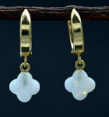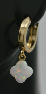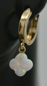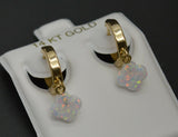 14K Solid Yellow Gold White Flower Huggie Opal Dangle Earrings
