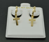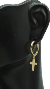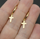 14k White or Yellow Solid Gold Dangle Cross Charm Huggie hoop Earrings