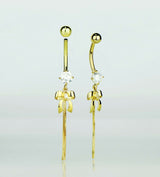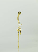 This is 14k Yellow or White Gold Belly Button Dangle CZ Bow Tie Barbel Bar Ring.
