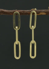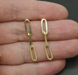 14k Yellow Solid Gold 3 Link Paper clip Drop polished 1.3'' Earrings