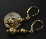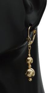 New 14K Solid Yellow Gold Round 8mm Leverback Bead Dangle Earrings
