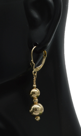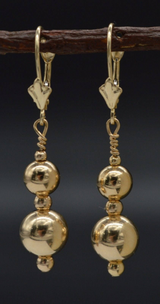 These new 14k solid yellow gold round 8mm lever back bead dangle earrings are classically styled with smooth and sensational shiny round 8mm beads for a design that won't fade out with time. The hanging length is 1.5".