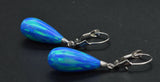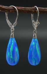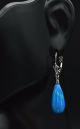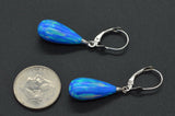 14K Solid White Gold Tear Drop Blue Fire Opal Lever back Dangle Earrings