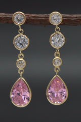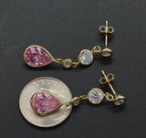5.00ct 14K Yellow Solid Gold Teardrop 8x6mm Pink Topaz Dangle Earrings