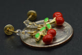 JM144 Enamel Cherries 14K Solid Yellow Gold Dangle CZ Screw-back Earrings