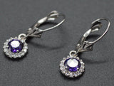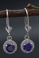 14K Solid White Gold 11mm Purple CZ Round Blue halo Cut leverback Earrings