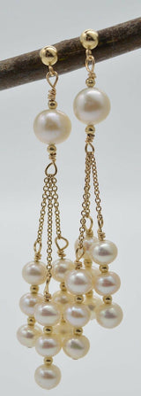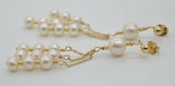 New 14K Solid Gold Cultured White Pearl Chandelier Earrings