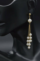 New 14K Solid Gold Cultured Natural White Pearl Chandelier Earrings