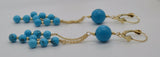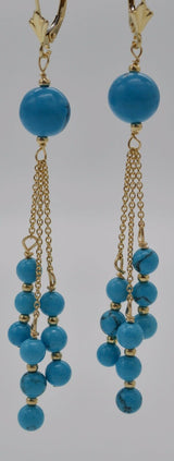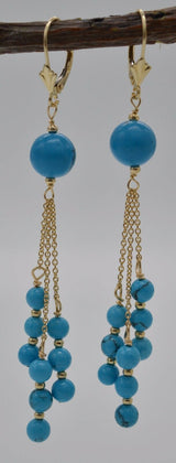New 14K Solid Gold Cultured Turquoise Chandelier Earrings