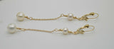 New 14K Solid Gold Cultured White Pearl Drop/Dangle Earrings
