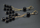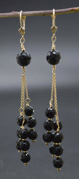 New 14K Solid Gold Faceted Black Onyx Chandelier Earrings