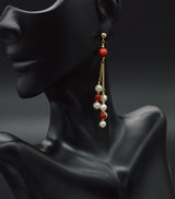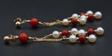 New 14K Solid Gold Natural Coral & Pearl Chandelier Dangle Earrings