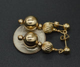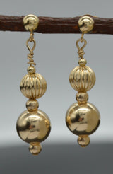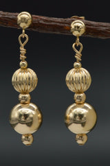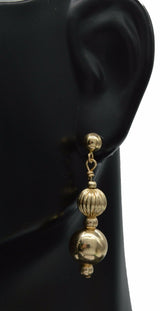 New 14K Solid Yellow Gold 8mm Shiny & Corrugated Bead Drop Dangle Earrings