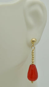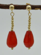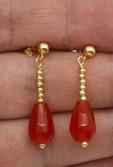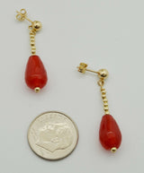 New 14k Solid Yellow Gold Natural Ruby Teardrop drop Earrings 2.3gr