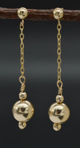 New 14K Solid Yellow Gold Round 8mm Shiny Bead Drop Dangle Earrings are classically styled with smooth and sensational shiny round 8mm beads for a design that won't fade out with time. The hanging length is 1.5". 14kt yellow gold earrings.