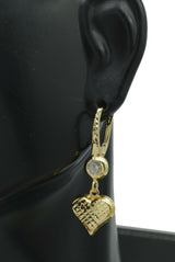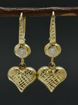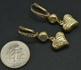 REAL 14k Yellow Gold Diamond-Cut Lever-back Heart Drop Earrings