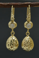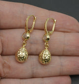 REAL 14k Yellow Gold Diamond-Cut Lever-back teardrop Drop Earrings