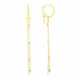 Real 14K Yellow Gold Hoops with Star and Long Chain Drop Huggies Earrings 1.8gr