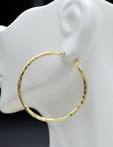 These 1.4'' 10k Solid Yellow Gold Large hoop Diamond Cut Earrings 35mm x2MM 2.1GR are always in style! This polished Diamond Cut 10k yellow gold pair takes things up a notch with a large composition, These earrings are perfect for you if you ever feel bored with colorless jewelry! Such advantages make it a more popular accessory.