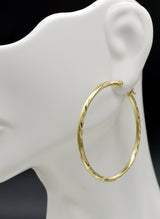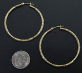 1.4'' 10k Solid Yellow Gold Large hoop Diamond Cut Earrings 35mm x2MM 2.1GR