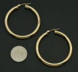 10k Solid Gold Big Large Hoop Plain Earrings 1.5'' 40mm x4mm 4.1gr
