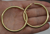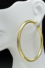 10k Real Solid Gold Big Large Hoop Plain Earrings 60mm x4mm 2.30'' 6gr