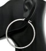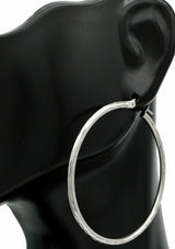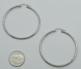 10k Solid White Gold big Large Hoop Diamond Cut Earrings 5mm x2mm. 3gr