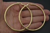 10k Solid Yellow Gold Big Large Hoop Diamond Cut Earrings 2.75'' 70mm x3MM