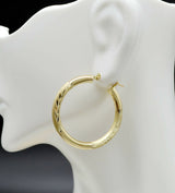 10k Solid Yellow Gold Large Hoop Diamond Cut Earrings 1.1/4'' 30mm x4MM 2.9GR