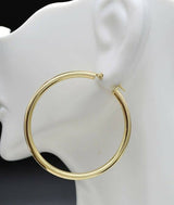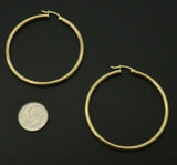 10k Solid Yellow Gold Large Polished Round Hoop Earrings 2'' 50mm x3MM 4GR