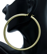 2.60'' 10k Solid Gold Big Large Hoop Plain Earrings 68mm x4mm 7gr
