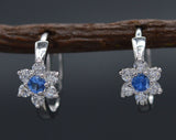 JM55 14K Solid White Gold 11mm blue Cubic Zirconia CZ Flower Huggie Earrings