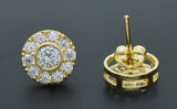 Real 10K Solid Yellow Gold 10mm Men's CZ Button Round Cut Stud Earrings 2.2gr