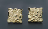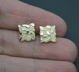 Real 10K Solid Yellow Gold 10mm Nugget Square Cut Stud Earrings 3.1gr Men-Women