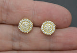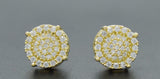Real 10K Solid Yellow Gold 11mm Mens Halo Round Cut CZ Charm Stud Earrings 2.1gr