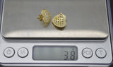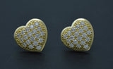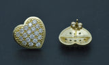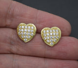 Real 10K Solid Yellow Gold 14.2mm Women Shiny Heart Pavé CZ Stud Earrings 3.8gr