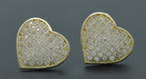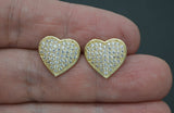 Real 10K Solid Yellow Gold 14.7mm Women Heart Pavé CZ Stud Earrings 3.3gr