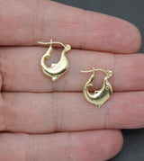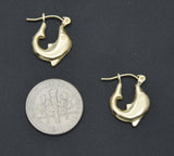 Real 10K Solid Yellow Gold 16.4mm Puffy Happy Dolphin Shape Hoop Earrings 0.9gr