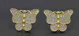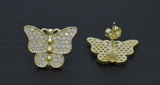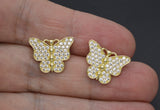 Real 10K Solid Yellow Gold 17.5mm Women Butterfly Pavé CZ Stud Earrings 3.4gr
