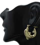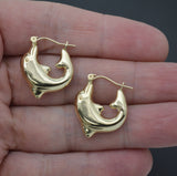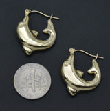 Real 10K Solid Yellow Gold 23mm Puffy Happy Dolphin Shape Hoop Earrings 2.0gr
