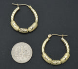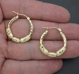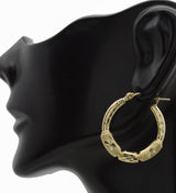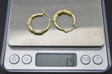 Real 10K Solid Yellow Gold 26.4mm Fancy Graduated Bamboo Hoop Earrings 1.9gr