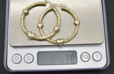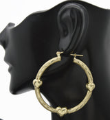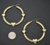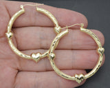 Real 10K Solid Yellow Gold 46mm Triple Heart Bamboo Graduated Hoop Earrings 3.8gr