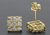 Real 10K Solid Yellow Gold 6.7mm CZ Square Pavé Stud Earrings 1.3gr Men-Women
